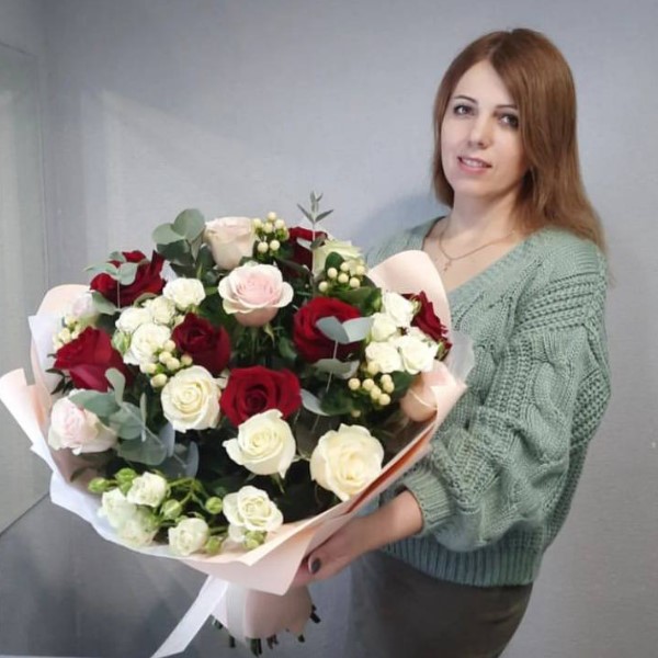 Цветы привезли свежие и во время. Огромный плюс - невысокие цены на розы. И бесплатная доставка с открыткой. Буду заказать здесь. Спасибо очень выручили!
