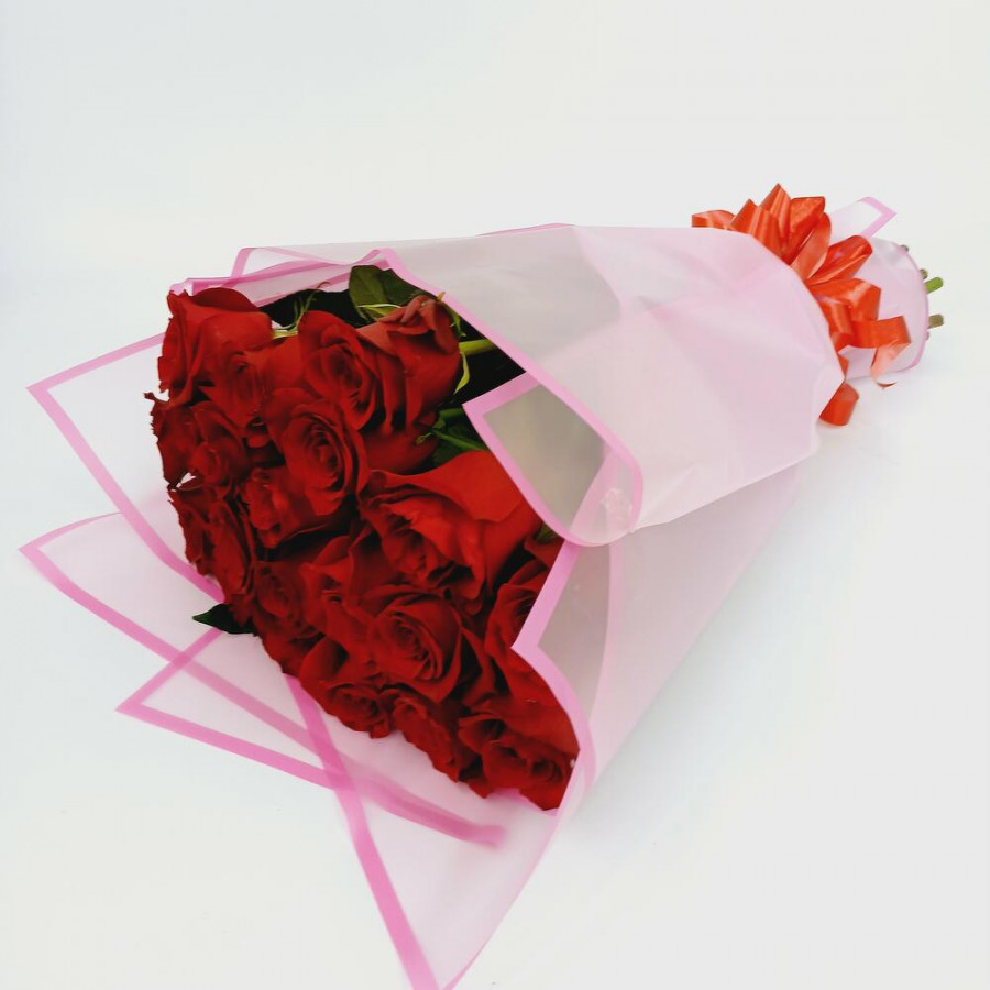 На фото букет из 21 бордовой розы. В составе: роза 21 шт, дизайнерская упаковка 1 шт, атласная лента 1 шт, . Все цветы свежие и ароматные, букет красиво оформлен и отлично подходит для подарка. Доступна доставка цветов или самовывоз.