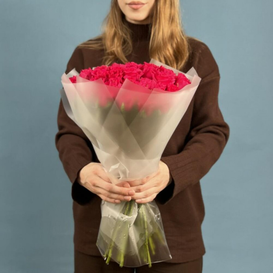 На фото букет из 41 малиновой розы. В составе: роза 41 шт, дизайнерская упаковка 2 шт, атласная лента 1 шт, . Все цветы свежие и ароматные, букет красиво оформлен и отлично подходит для подарка. Доступна доставка цветов или самовывоз.